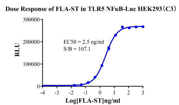 Figure6. Detect Luciferase assay by Ultra Luciferase Detection Kit CBPH0001(we strongly suggest to purchase from Cobioer). Dose response of FLA-ST in TLR5 NFκB-Luc HEK293(C3).