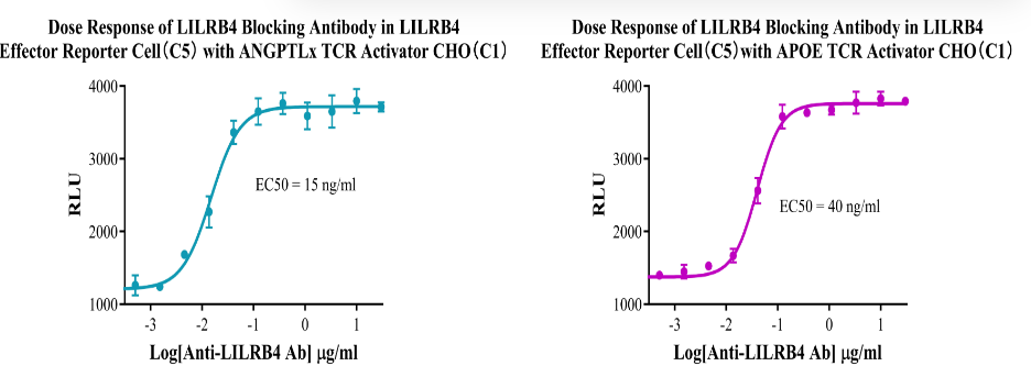 為了助力LILRB藥物的研發(fā),科佰生物分別開發(fā)了針對LILRB1、LILRB2和LILRB4的細(xì)胞模型,用于候選藥物早期機理研究。部分結(jié)果如下: