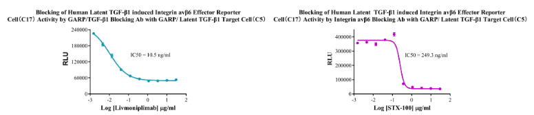為助力GARP/LTGF-β 靶點藥物研發(fā),南京科佰開發(fā)了GARP/Latent TGF-β1 Target Cell、GARP/Latent TGF-β1 CHO細胞篩選模型,產(chǎn)品驗證結果如下: