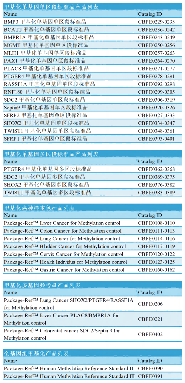 幾十幾百基因,幾萬幾十萬區(qū)段,不具體指向,包含零甲基化、100%全甲基化、低甲基化、中甲基化、高甲基化。如:零甲基化標(biāo)準(zhǔn)品為WGA全基因組擴增,平均甲基化程度為0,采用ddPCR法和酶切法雙重驗證。
