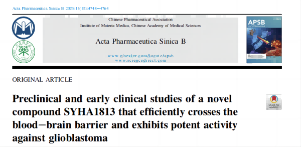 文章題目:Preclinical and early clinical studies of a novel compound SYHA1813 that efficiently crosses the blood-brain barrier and exhibits potent activity against glioblastoma.
